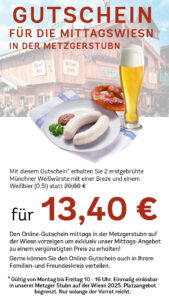 Für 2025 haben wir noch einige Sitzplätze für die Mittags-Wiesn frei (Montag-Donnerstag 10-16 Uhr).